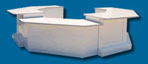 Includes two 36" wet bars with a footrest base and a grill bar. This bar could be customized to include a sink, refrigerator, ice maker, or doors. The ultimate addition to any houseboat.